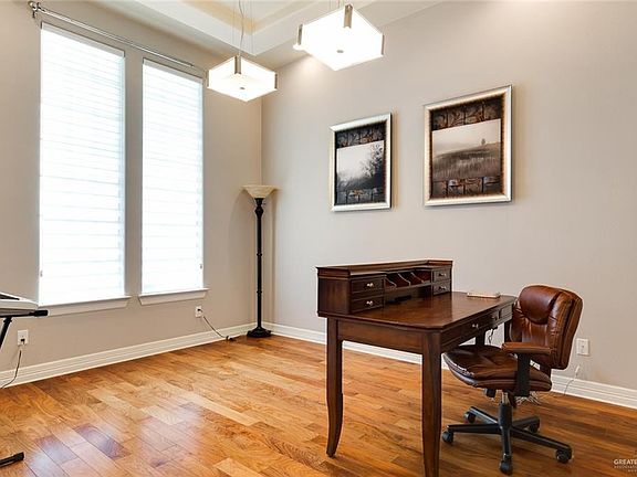 Elegant modern house nestled in Monte Real at Sharyland Plantation. Enjoy diverse high decorative ceiling with sleek floors and luxurious light fixtures throughout. Built in dry bar and entryway storage bench with coat rack, spacious living and dining areas for entertainment, sizable gourmet kitchen with beautiful glass title backsplash and granite counter, complete with stainless steel appliances and upscale cabinetry. Ample bedrooms with plenty of natural light, titled covered patio perfect for a pool or gazebo.