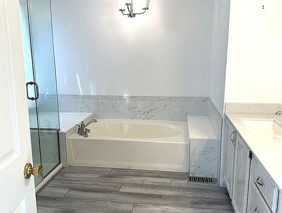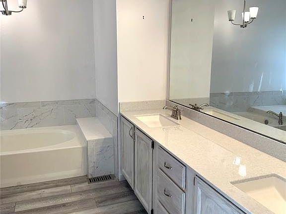 The great room features built-in bookcases and a wood-burning fireplace, creating the perfect setting for cozy evenings or relaxing weekends at home. Upstairs, you’ll find a spacious primary suite with a custom bathroom featuring double sinks, a soaking tub, and a separate shower, a true retreat after a long day. Two additional bedrooms are generously sized, have all new carpeting, and offer plenty of natural light and closet space.