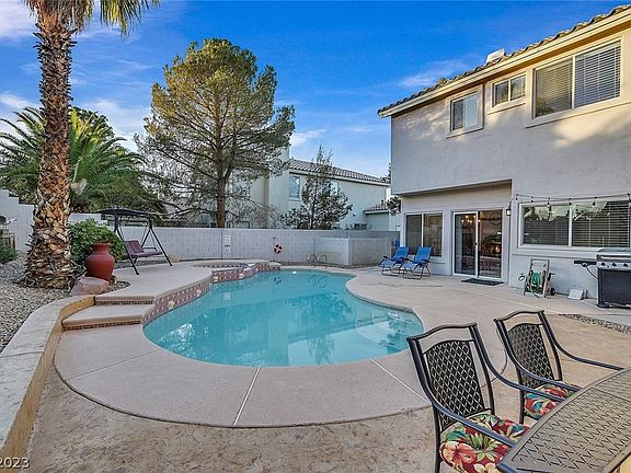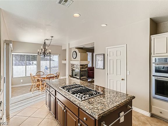 Spectacular home Located in Beautiful Henderson. Your new home boasts 5 lg bedrooms and 3 baths. Perfect for company with a private bedroom downstairs. The Vaulted ceilings adds openness to the Living rm, and has a wet bar and fireplace in the family rm. For your cooking pleasure-Gourmet kitchen with Island cooktop, granite counters, JenAir stainless steel appliances and huge walk-in-pantry. Sprawling primary suite features double fireplace and sitting space perfect for luxuriating with a cup of coffee or glass of wine, en suite with separate tub/shower and 2 sinks, plenty of room! Large private backyard ideal for entertaining or as your own private sanctuary-featuring pool/spa and a spacious sitting area. Ideally located minutes from the airport and elementary school as well as dining and shopping. A gem of a property with no HOA. Don't want to miss out on this one!