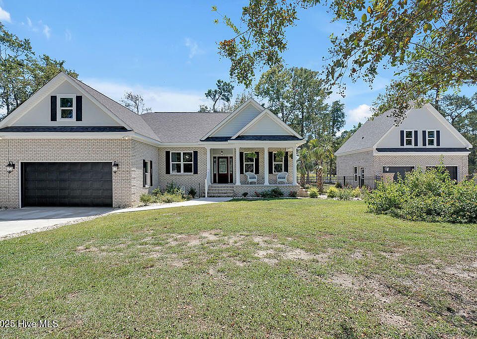 Here is your hidden gem! Tucked away in the beautiful, wooded, Mary Frances Place neighborhood, this brand new home has peaceful views of nearby community ponds. The backyard is ready for your creative ideas with a Trex back deck and plenty of room for your personal touches. The home features an open floor plan with tall ceilings, a dining room, and wood-look luxury vinyl plank flooring in the main areas and primary bedroom. The modern kitchen, with quartz counters, white cabinetry, a double-door pantry, and a breakfast area, includes all appliances. Two guest bedrooms & a full bathroom are on the opposite side of the home from the primary bedroom. The bright living room, with a propane gas fireplace, adjoins the screen porch with views of the ponds, fountains, & mature trees. The primary bedroom includes a sitting area, a large walk-in closet, direct access to the screen porch, and tranquil pond and fountain views. The primary bath includes a jetted tub, a walk-in shower, and a private water closet. There are upgraded light fixtures and ceiling fans throughout the home. The large bonus room over the attached 2-car garage features a half bath and is heated & cooled by a separate mini split HVAC system, making it a great space for overnight visitors. The property also features a detached 2-car garage, also with a room over the garage (approx. 500 square feet not included in the total square footage). Prior to closing, this space will be converted into a bonus room, a half bath, and a kitchenette with cabinets, sink, dishwasher, stove, and a small refrigerator. A glass door leads to a balcony with backyard & pond views. What a wonderful space as an office, a workshop, or an art studio! Detached garage includes a back patio and an extra-wide rear utility door for your golf cart, mower, and beach toys. Mary Frances Place is conveniently located near shopping, dining, medical offices, and only a short drive to Downtown Wilmington, Southport & area beaches.