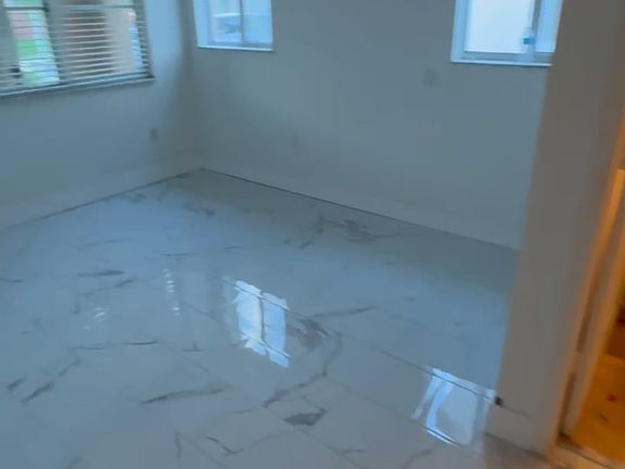 Just remodeled the entire house with new white porcelain floors, new Kitchen with stainless steel appliances, flat cooktop, new central A/C, washer, dryer, private yard with mango trees and storage shed.