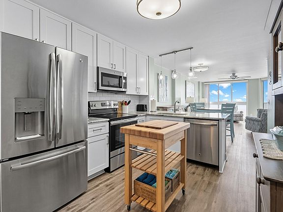 This beautifully updated oceanfront condo offers breathtaking floor-to-ceiling views of the Atlantic from the moment you open the door. The bright and airy living area is framed by expansive windows that fill the space with natural light, creating the perfect coastal retreat. The kitchen is outfitted with stainless steel appliances, granite countertops, and crisp white cabinetry, offering both style and functionality. Throughout the condo, you'll find tasteful furnishings and décor - making this a furnished, move-in-ready opportunity. The oceanfront primary bedroom provides private balcony access, allowing you to wake up each morning to the sound of the waves and stunning ocean views. Both bathrooms feature elegant tile work and updated finishes, including a beautifully tiled shower. Additional upgrades include a new washer and dryer and a water heater installed just two years ago. Enjoy the resort-style amenities of The Pinnacle, including a heated indoor pool, sundeck, and grilling area - ideal for entertaining or relaxing after a day on the beach. The condo also includes a convenient storage closet just outside the unit, perfect for keeping beach gear and personal items secure. Whether you're seeking a full-time residence, a vacation getaway, or an investment property, this condo checks every box. Located in the heart of North Myrtle Beach, The Pinnacle offers easy access to award-winning restaurants, shopping, golf, and entertainment. The community allows both short-term and long-term rentals, making it a tremendous opportunity for income potential or personal use. Experience the peaceful beachfront lifestyle you've been dreaming of - schedule your private showing today! Buyer is responsible for verification.