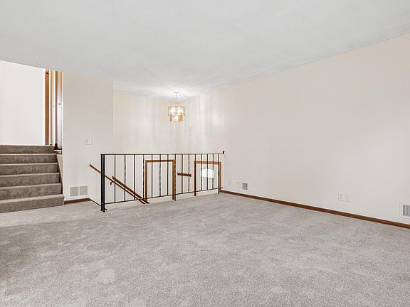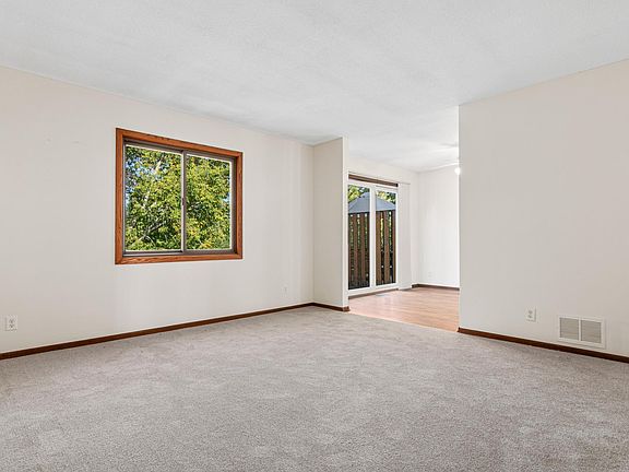 Welcome to this wonderfully maintained townhome in a great Roseville location on a cul-de-sac backing up to nature close to highway access, parks, trails, shopping, and much more. Walk in and be greeted by a large living room, kitchen, and dining room space with sliding door to your deck, new LVP flooring and carpet throughout the entire home. Upstairs features 2 bedrooms and a full bath with new vanity, countertops and LVP flooring. Downstairs is an additional large bedroom or 2nd family room area with walkout, updated bathroom with new LVP flooring, vanity and countertops. This home has been well maintained and is perfect for those looking for maintenance free living and low HOA fees. Ready to move right in and enjoy!
