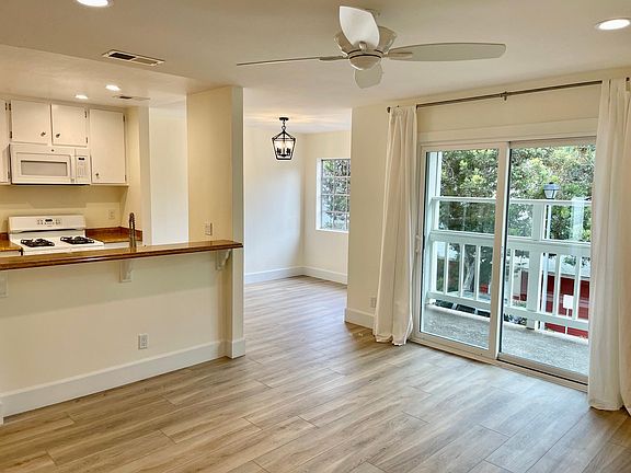 Lovely upper-level remodeled condo in the Pacific Terrace community in the Lantern Village of Dana Point. This darling 2 Br/1 Ba condo is very light and bright featuring: luxury vinyl plank flooring, fresh paint, a newer roof, newer appliances and electrical, ceiling fans, LED recessed lighting, mostly newer windows, a balcony, an enclosed, large two-car garage with remote access, and a backyard with brick pavers. There are views of trees and greenery from the condo facing toward Coast Hwy. Ideally situated next to The Row in Dana Point's Lantern Village coastal area with several great restaurants and shops, PLUS, this community has private gated access to a beautiful walking path that takes you to the park by Doheny Beach, Dana Point Harbor, plus more shops and restaurants off Golden Lantern/Dana Point Harbor Drive. The Marriott Laguna Cliffs Resort & Spa is within walking distance with parks and stairs leading right down to the harbor. Take a relaxing stroll to watch the sunset and boats and enjoy the beautiful parks and activities that make Dana Point so special. This turnkey condo has two bedrooms with ample closet space, plus a sliding glass door from the primary bedroom to the back of the condo. There is a pull-down staircase for storage in the attic, a pantry in the kitchen, ceiling fans, and a large two-car garage. The garage is oversized and has some storage shelves plus hookups for a full-size washer and dryer. There is a community laundry room for convenience if needed. This community is a hidden gem in one of the best locations for walking everywhere, bicycling, and easy freeway access. Close by just to your north is The Strands Beach Park, Salt Creek Beach, the Ritz Carlton, Waldorf Astoria, and Laguna Beach with its famed Montage property. Dana Point Harbor is currently undergoing a $400-million-dollar makeover to make it an even more fabulous world-class destination. Property Owner pays for HOA dues, trash and water. All other utilities are the responsibility of the Tenant. This is for an unfurnished 12-month lease. There is a 2-car garage and vehicles must be parked in garage. No smoking and No pets.