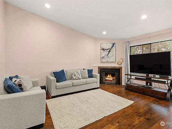 This home features vaulted ceilings that make it feel spacious and airy. It offers two sizable bedrooms and 1.5 bathrooms, with both bedrooms boasting a large closet space. The bright dining area opens to a private back deck surrounded by trees. The spacious living room includes a slider glass door leading to a private front deck with views of the city and mountains. One covered designated parking. Plenty of parking for guest. Conveniently located between I-5 and Highway 167, and minutes from the future Kent-Des Moines Light Rail Station.