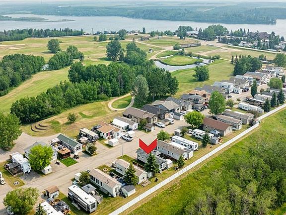 Beautifully cared for Park Model in quiet phase 3–Turnkey & 4-Season Ready! Discover the perfect blend of style and comfort in this stunning 2-bedroom, 1-bathroom park model in Pine Lake. Built in 2004, this beautifully maintained home feels like new and is designed for year-round living. located in Phase 3 of the Whispering Pines Resort, beautifully fully fenced and gated for security. Key Features: • Prime Location: Enjoy quiet time and privacy at the back • Stylish Outdoor Living: Spacious - freshly repainted deck, partially covered with a pergola that has roommate in the corner so please be careful, plus a shed with shelving for extra storage. • Bright open-concept floor plan with a cool aesthetic and decorative shelving above windows• Fully Equipped Kitchen: Breakfast bar and a propane stove for effortless cooking. • Cozy & Warm • Primary Suite: Built-in storage and a thoughtfully designed space. • 4-Piece Bathroom* in suite laundry (newer machines). Functional and spacious • Turnkey & Move-In Ready! Do not miss this incredible opportunity to own a 4-season getaway in a prime location. Whether you are looking for a weekend retreat or a year-round home, this property offers comfort, style. Resort includes: an indoor heated swimming pool, hot tub, exercise/gym (open year-round!), changing rooms and bathrooms, pro shop at the clubhouse, 18 hole golf course, restaurant, lounge and patio with stunning views of the lake, driving range, playground, community gardens, sport courts, laundry facilities, event facility, snack shack, as well as fresh veggies and fruit from local farmers on Saturdays! Marina is available for rent at $1050 plus for the season: May to September. There is a crew who helps with setting up your boat lifts as well as they can stay on the beach for those who own the lots. All of this is just 35 minutes drive from Red Deer, 1.5 to Calgary and Edmonton! Enjoy the views of golf-course on summer days. Located at the quiet end of the road-perfect for relaxing after a long day of work. There is a double paved, parking spot for your vehicles to park. Condo fee includes water, sewer, garbage as well as gate and lawn maintenance except for weed control and clubhouse and pool access. Pets are welcome with approval. All located on the pavement, all set up and ready to move in. Great community to enjoy summer in!