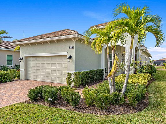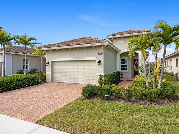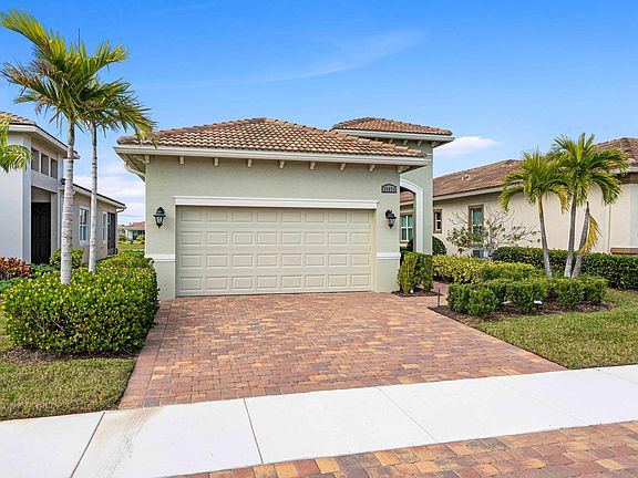 Waterfront 'Casita' Model in Verano PGA Village. Discover lakefront living in this well maintained 2 BR's, 2 BA's, plus large den/office & 2 car garage with epoxy flooring. Laundry room featuring cabinets and utility sink. Built with CBS construction, Barrel tile roof, hurricane impact windows and doors. Volume ceilings & tile in main areas. The open kitchen is a chef's dream, showcasing quartz countertops, a glass backsplash, stainless steel appliances (new refrigerator), 42'' soft-close cabinets, a breakfast bar, island & pantry. The spacious master suite includes a walk-in closet, dual sinks and a seamless glass shower, while the split floor plan ensures privacy. Beautiful Tranquil lake views includes screen enclosed lanai & spacious fenced backyard. ONE YEAR HOME WARRANTY INCLUDED!! HOA includes: Recreation clubhouse Talavera, lawn care, exterior pest control, cable, high speed internet, alarm monitoring & manned gated security. PGA Verano is a resort style community with 27 pickle ball courts, tennis courts, fitness centers with state of the art equipment, indoor and outdoor pools, saunas, and dog park. Exceptional Talavera Social Club 19,000 sq ft offers something for everyone! There is a golf cart path to the PGA Golf Club which offers 3 Public Championship Golf Courses and Private Course (membership optional). Located minutes from Shopping, Restaurants, Activities, Entertainment & Even Home of the New York Mets Spring Training. Only 45 Minutes from Palm Beach Airport and a growing area. The Treasure Coast has beautiful Waterways for the Beach, Fishing & Boating. Due to the location of the Treasure Coast the Weather is delightful! Schedule your private showing todaythis gem won't last!