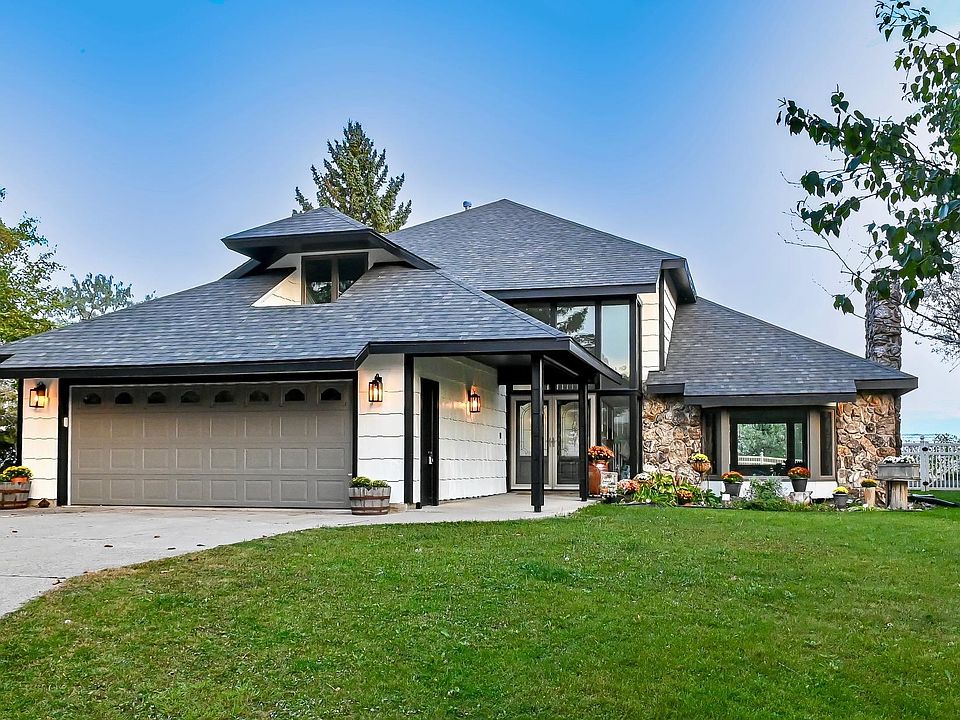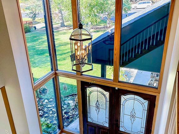 Executive 5-Bedroom Home with City Views on a Half-Acre Lot This stunning five-bedroom, three-bath executive residence offers both elegance and comfort, set on a beautifully landscaped half-acre lot with sweeping views of the city. As you enter, you are welcomed by a grand foyer with soaring windows and a stately staircase, creating a truly beautiful first impression. The main floor features a formal dining room and a formal living room, each with charming window seating. The living room also is home to a wood burning, brick fireplace, perfect for cozy evenings. A versatile main-floor bedroom doubles as a guest room or office, accompanied by a convenient powder room. The heart of the home is the impressive Great Room, with a kitchen showcasing high-quality cabinetry with crown molding, granite countertops, under-cabinet lighting, a stylish tile backsplash, and a spacious walk-in pantry. Just off the kitchen, a sunroom with floor-to-ceiling windows provides access to the backyard and captures breathtaking city views. An inviting family room with a stone, gas fireplace and custom built-ins and laundry room complete the main level. Upstairs, the large primary suite offers a walk-in closet and an ensuite bath with dual sinks, soaking tub, and separate shower. Three additional bedrooms and another full bath provide ample space for family and guests. The lower level features a full unfinished basement with egress windows, plumbing for an additional bathroom, and steel beams, offering endless possibilities for future expansion. This home has been lovingly maintained and thoughtfully updated with a brand-new shingles, newer windows, fresh interior and exterior paint, new carpet, and updated light fixtures throughout. Outdoors, the fenced half-acre yard is a private retreat with mature trees, perennials, a garden, patio, and a fire pit—perfect for entertaining. There is room to add a shop or a third-stall garage and there is a place for your RV or boat, while the finished garage provides direct access to both the main floor and basement. A rare opportunity to own a quality-built home that combines timeless craftsmanship with modern updates and spectacular views. Call today to make a private appointment to see this home.
