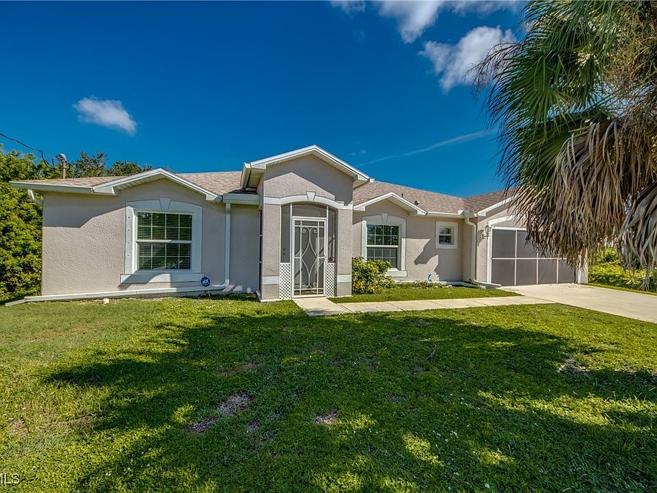 This is an original-owner pool home that reflects true pride of ownership that has been thoughtfully maintained throughout the years. Offering 2,005 square feet of living space, this 3-bedroom plus den, 2-bathroom residence built in 2007 and located in still under developed area of Northwest Lehigh Acres. Inside you will find a spacious open floor plan with tile flooring throughout the main living and wet areas and vinyl in the owner's suite. The heart of the home shines with brand new quartz countertops.There is a kitchen nook and formal dining area perfect for hosting any meal or conversation with every cup. A split-bedroom design ensures privacy, with two guest rooms tucked on one side of the home, and the huge owner’s suite rests on the other. Owner's suite has a large soaking tub, walk-in shower, and ample space to unwind. The den provides flexibility for a home office or hobby space or a formal entertainment area. Outdoors, you have a fully fenced in back yard and screened-in pool and lanai offering a private retreat for relaxation or entertaining under the Florida sun. With a newer roof and A/C, this home not only delivers inviting living spaces but also valuable updates. Nestled away from the bustle yet within easy reach of local conveniences, this meticulously cared-for home is ready to welcome its next chapter.