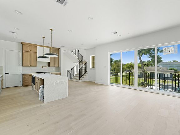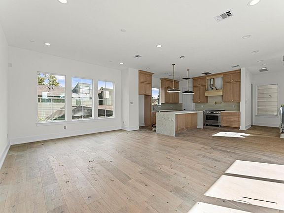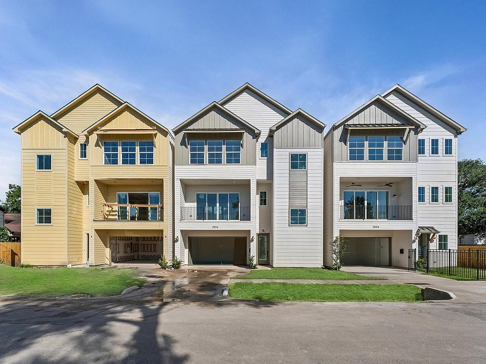 This thoughtfully designed 3-story home by TOMO Homes offers 2,087 sq ft of open living space with 3 bed/3.5 baths. On the first floor, a bedroom with a closet and full bathroom is perfect for guests. Second floor boasts a spacious living room with an open floor plan, enhanced by a large 20 ft covered balcony, perfect for relaxing. Gourmet kitchen is complemented by beautiful quartz countertops, stainless steel appliances a 36" gas range, along with a walk-in pantry. Dining area is located right off the kitchen.The top floor includes a primary suite featuring 11 ft ceilings and plenty of natural light. Spa-like primary bath offers a free-standing tub, large walk-in shower, dual vanities and walk-in closet. The third bedroom, with a tub/shower combo, laundry room and flex-room are also on this floor. Home includes white oak engineered hardwood floors and is elevator ready. Location is convenient, surrounded by hike/bike trails, parks, restaurants, retail and the Houston Farmers Market.