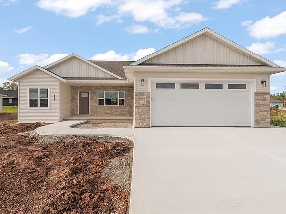 Stunning new construction in the sought-after Mystic Creek Subdivision in De Pere. This 4-bedroom ( 4 bedroom could be an office) 2.5-bath home showcases a stylish open-concept split-bedroom design with first-floor laundry and a convenient half bath. The kitchen offers a center island, soft-close cabinets, and patio doors off the dining area that open to a concrete patio—great for outdoor dining. The spacious primary suite features a dual-sink vanity, full bath, and large walk-in closet. A brick and vinyl exterior enhances curb appeal, while the lower level is stubbed for a full bath and includes an egress window for future expansion. Comfort, function, and quality throughout. SEEDED LAWN INCLUDED! One-year builder warranty.