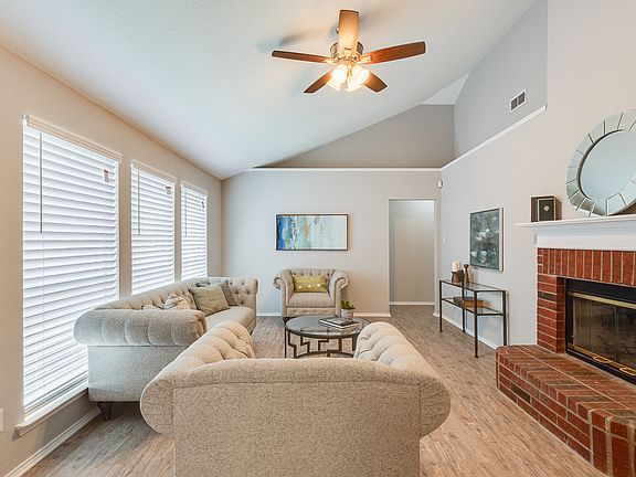 Beautiful single family three-bedroom, two-bathroom home with wood grain vinyl plank flooring throughout, stainless steel kitchen appliances, quartz kitchen and bathroom counter tops and family friendly layout. Plenty of space in the kitchen for dining. Central air and heat, two car attached garage, fenced back yard, sprinkler system, covered patio, one level home with fireplace. Family room dimensions: 18' x 12'; Primary bedroom dimensions: 15' x 12' with walk-in closet. Tenant provides Washer, Dryer and Refrigerator. Tenant pays utilities and lawn maintenance. Located in Tarrant County close to great shopping, restaurants, grocery and fitness centers, with easy access to I-30 and I-820. Recreational activities nearby like Eagle Mountain Lake, Fort Worth Nature Center and Refuge, and Lake Worth. Campgrounds, waterfront parks, marinas, and more await near the city's lakes. Residents appreciate easy access to Fort Worth Meacham International Airport and Interstate 820. Enjoy hiking and mountain biking trails through forested land at Marion Sansom Park.