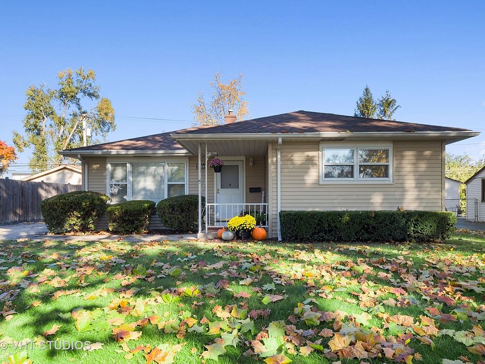 This absolutely adorable ranch sits on a quiet, tree lined street in the most perfect of locations with NO NEIGHBORS BEHIND YOU! No need to do anything before moving in, as this home was just freshly painted throughout in a neutral grey with white trim and gleaming wood laminate flooring throughout the living room, hallways and all 3 nicely sized bedrooms. Full bathroom is updated and freshly grouted. 2 car garage!! The large, fully fenced yard is wonderful for entertaining, pets and/or children! This home is walking distance to the Elementary School, Junior High and High School. Minutes to shopping, grocery, Starbucks and possibly the new home of the Chicago Bears! While this is a wonderful home to live in, it is also great for investors. Roof, siding and water heater all replaced in 2015.