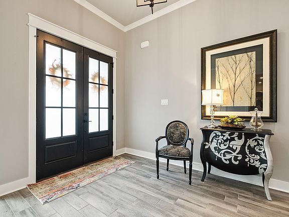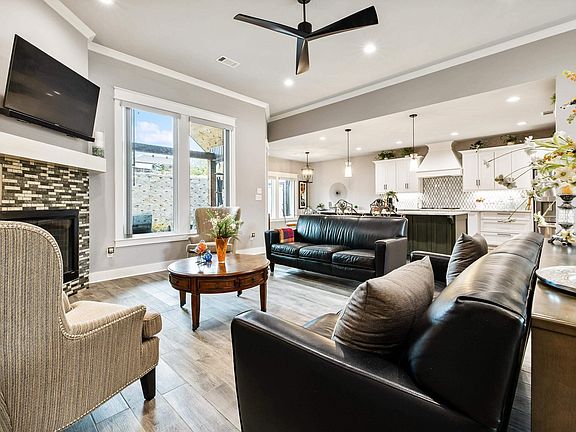 Private primary suiteWalk-in closetCustom tile showerFema-approved safe roomOpen-concept designGas fireplaceVaulted ceiling