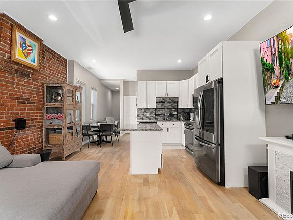 No HOA fees!! Parking, privacy fenced backyard w/dog door, and private roof top deck. Stylish lot-and-a-half sized end-unit townhome in highly sought-after Lower Highlands (LoHi). Entire house rehabbed approx 5 years ago. Inside you have tall ceilings, white oak flooring, and brick accent wall. Modern kitchen with granite countertops, stainless steel appliances, and a center island. Drinking water lines recently replaced by the City – no lead here. New custom closet (Aug 2025). Finished basement offers a versatile second bedroom or office and brand new carpet (Sept 2025). Outdoor living is where this home truly shines. The privacy-fenced backyard is complete with a dog door, fire pit, grass area, and sunny patio. Head up the newly built Trex/cedar stairs (April 2025) to the private roof top deck to enjoy panoramic views of the mountains, Mile High Stadium, and even Coors Field fireworks. You can take out some or all of the grass (concrete underneath) and have even more parking for additional cars or trailer. Additional highlights include custom blinds, new ceiling fans with remotes, new Nest thermostat, and a radon system with warranty for peace of mind. No monthly HOA fees or rules (party wall agreement only). Located a block from the Highlands pedestrian bridge, you’ll have easy access to parks, the river, Union Station, the 16th Street Mall bus, and multiple sports arenas. Walk to baseball, football, hockey, or basketball games—or simply enjoy the endless dining and nightlife options right outside your door. A truly unique and private unicorn in the heart of the action.