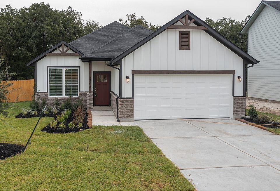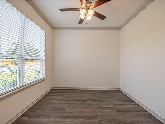 AVAILABLE NOW FOR RENT - THE SAGE MEADOW MODEL HOME! This open concept, spacious 3 bedroom 2 bathroom plan with an office is just what you are looking for. The exterior features a brick wainscot, cedar accents, 2 car garage, fully sodded yard, and an irrigation system! Inside you will enjoy the luxury vinyl plank flooring throughout the main areas. The kitchen features quartz countertops, stainless steel appliances including a refrigerator, tile backsplash, upgraded lighting, custom site-built cabinetry and more! The living room is oversized and has tons of natural light. The primary bedroom features large windows, double vanity in the bathroom, a shower with tile walls, deep soaker tub, tile flooring in the shower, and a semi-frameless glass enclosure. Also in the primary bathroom is a private toilet room and an extra linen closet. Towards the front of the house are two extra bedrooms and another bathroom with a tile surround tub/shower combo, high end granite countertops, tile flooring and upgraded plumbing fixtures. The house is equipped with blinds throughout. The front room features vinyl flooring and can be used as an office, playroom, or more! Head outside on your patio and enjoy a Texas sunset with your corner lot, wooded tree line, full sodded yard, irrigation system, and more!