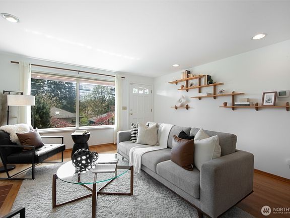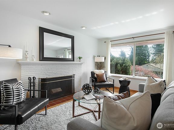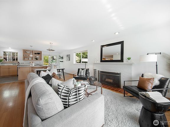 This Olympic Hills mid-century home truly offers a perfect blend of modern updates & timeless charm. The open-concept kitchen & cozy wood-burning fireplace create a welcoming atmosphere, while the oak hardwoods add a touch of warmth throughout. The private backyard is an excellent extension of living space, w/ a covered outdoor patio & fireplace providing an inviting spot for year-round relaxation.The main floor features 2-beds & full bath, while the lower level offers a spacious living area, 2nd fireplace, 3rd bed w/ en suite bath, & good ceiling height—making this lower space both functional & comfy. With easy access to I-5, this home combines the convenience & charm you've been looking for. Welcome to your new home!