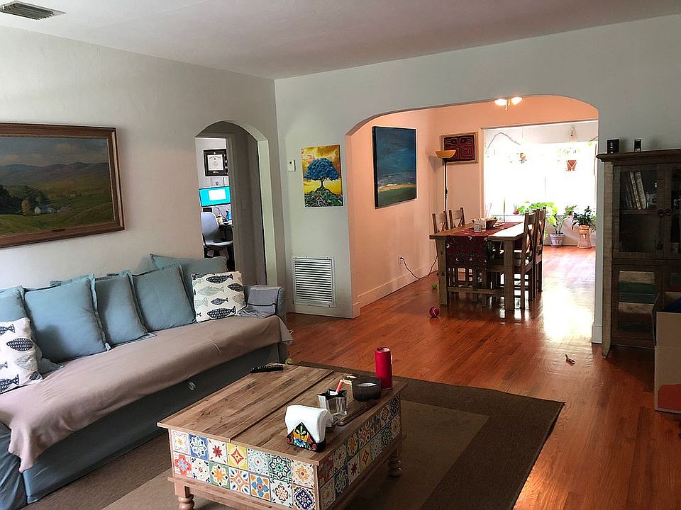 Prime location! Beautiful mid-century home in renowned Shenandoah that is walking distance to Miracle Mile, close to all major highways & located minutes from Coconut Grove, Brickell, The Roads and Key Biscayne. Move in ready! BRAND NEW ROOF, fresh exterior and interior paint, lots of light & hardwood floors. Big yard with mature fruit trees (sweet Tamarind from Thailand, mammoth Indian mango, banana & sweet starfruit) and room for a pool. 2/1 in the main part of the house plus a bonus 1/1 studio or in laws quarter with a full bathroom and separate entrance; great potential for an investment.