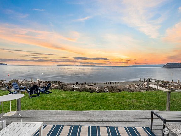A rare opportunity on coveted Sunlight Beach! Feel the beauty of endless sunsets, the majestic Olympic Mountains, the tranquility of Useless Bay, eagles soaring overhead, & gentle waves on your private beach just steps away. Kayak, beachcomb, BBQ, entertain, drink wine, & let your mind escape from the stress and busy-ness of life. This dreamy coastal beachfront sanctuary has all the modern features you’re looking for: vaulted ceilings framing endless views, open floor plan for entertaining, chef’s kitchen, remodeled baths, a primary suite w/spa bath, & downstairs w/ 3 addl BRs & a home theater. 5th BR/bonus room + 2 car garage. Live, vacation, & invest generating $100k+ annually in ST rentals. Ferry, dining, hiking, & more within mins!