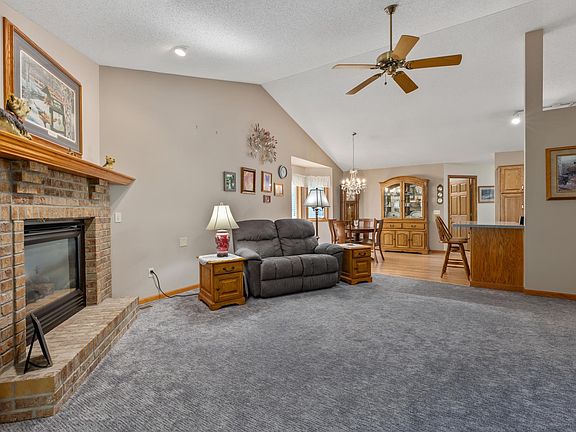 Move right into this 2 BR, 2 bath home with sunroom and fireplace! Located in this desirable HOA neighborhood, you are close to medical facilities, walking path and park. Featuring newer flooring and countertops and a sunroom to enjoy watching wildlife and walkers. Cathedral ceilings and gas fireplace make the living space so comfortable. The primary bedroom has a walk-in closet and private full bath. Snow removal, lawncare, sanitation and management of the association are taken care of! Make an appt today!