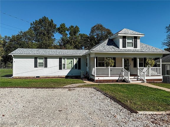 This four bedroom, one bath vinyl sided house is move-in ready. It has new roof and gutters, new front porch, new hot water tank, large back deck with a 12 x 16 canopy that has a fan, heater and light. It has a walkout basement into a large fenced back yard.