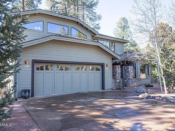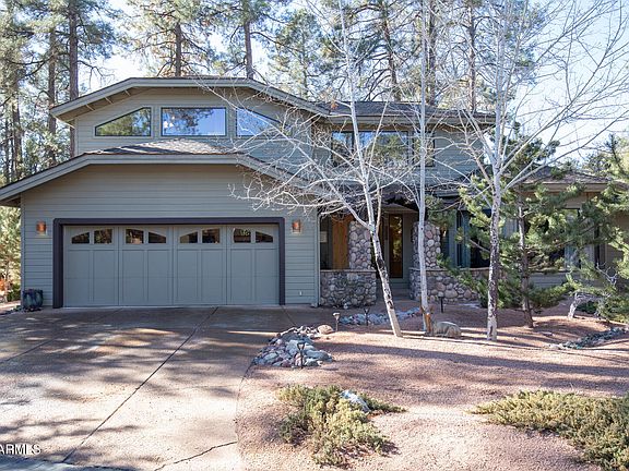 Luxury Mountain Retreat on the 17th Fairway in Chaparral Pines! Escape to the serene beauty of Rim Country with this exquisite home located in the prestigious, gated community of Chaparral Pines. This well-maintained property offers the perfect ''cabin-in-the-woods'' feel while providing stunning views of the #17 fairway and the picturesque bridge that crosses it. Designed for both comfortable living and effortless entertaining, the home features a majestic Great Room with soaring vaulted ceilings, a cozy stone fireplace, and a walkout to a spacious covered deck—perfect for enjoying Payson's four distinct seasons. The gourmet kitchen is a chef's delight, complete with a center island with a breakfast bar. The main level is home to an expansive master suite, offering a private The main level is home to an expansive master suite, offering a private sanctuary with double vanities, a large garden tub with jets, and a separate shower. Two additional guest bedrooms and a living area on the upper level provide a private space for guests. Numerous upgrades have been completed throughout the home, including a newer roof.