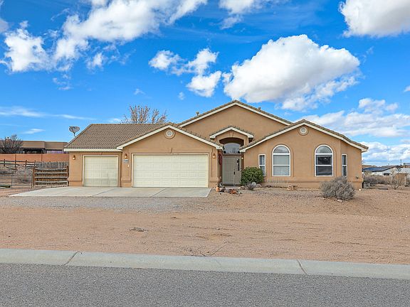 Welcome to your dream home! Nestled on a spacious half-acre lot. This Kim Brooks custom built home with pitched tile roof and walled back courtyard offers charm, privacy and views of the Sandia Mountains. Step inside to discover vaulted ceiling in a comfortable living area with elegant kiva fireplace. Italian Porcelain tile flooring and Ceramic Tile through out the home. Porcelain tile and grout available for replacing existing ceramic tile throughout the home should you desire too. Wide open kitchen with stainless steel appliances, ample counter space and cabintry. Primary bedroom thoughtfully situated separate from the other bedrooms for added peace and privacy. Don't miss your chance to make it yours!