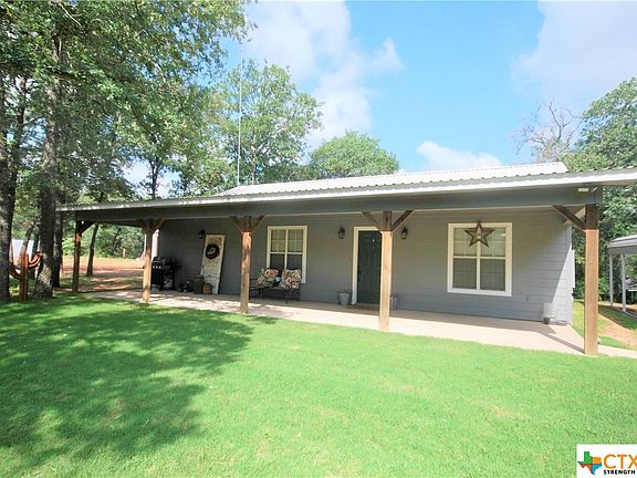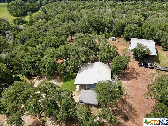 You will want to see this 2 acres with a home sitting on a hill located just outside of Rosanky, Tx on FM 535, complete with a large workshop. Want the feeling of the country, this property has it and room for pets and children to run. The welcoming pipe entrance opens to the winding road which takes you to the improvements. The 3BR, 2 BH home is very neat and clean with a metal roof and is surrounded by beautiful trees. The stainless Kenmore refrigerator and Maytag range will convey. Kitchen has an island with seating, a pantry and the floor plan is an open concept to the family room. The primary bedroom has a large bathroom with long counter top and closet. The washer and dryer is conveniently located near the primary suite. The 30 X 40 workshop/ barn has cement floors electrical , water and stairs leading to an overhead loft which is great for extra storage. It has one overhead door for easy access and one large sliding door. The 20X40 lean-to has lots of overhead lighting.