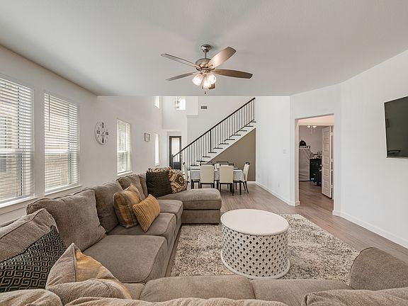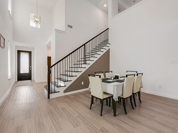 Make yourself at home in this sleek, modern gem. An airy living room, open to the kitchen and suffused with natural light, welcomes guests and loved ones. Upstairs, an additional living area provides even more room to relax or entertain. The kitchen features generous counter space, a two-basin island sink, bar seating, stainless appliances, and abundant cabinet & pantry storage. The downstairs primary bedroom is spacious under a vaulted ceiling, with a lovely bay window and sumptuous en suite bath offering a luxurious soaking tub, separate glass & tile shower, and double vanity. In the backyard, enjoy a delightful covered patio, decking, a convenient storage shed, and space to unwind, surrounded by tall privacy fencing. Easy access to I30 and nearby fabulous Lake Ray Hubbard with boating, fishing, parks and more as well as plentiful shopping, dining, and entertainment at Rockwall Harbor. Washer, Dryer and Refrigerator are part of the lease!