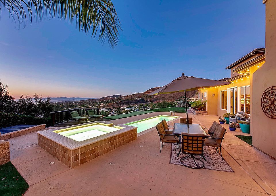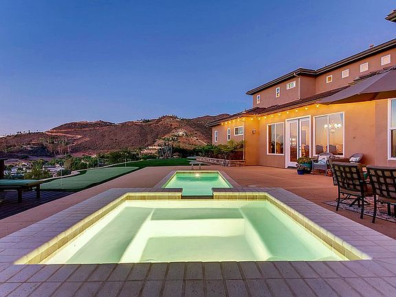 Hidden off San Clemente Avenue lies the highly desired private street of Longmont. With beautiful panoramic mountain and valley views surrounding your home as far as the eye can see. This 4 bed, 4 bath is a perfect home for you and your family. With a beautiful Tuscan style interior you are sure to be the host the for all the heartwarming holidays. Enjoy your own private pool BBQ, pool and even putting green that all look out to your new amazing sunset view! Welcome home to your relaxation staycation! This estate is surrounded with over 90 self-shedding King Palms providing easy maintenance plus drought tolerant landscaping, setting the tone for your resort-like setting. Thoroughly upgraded throughout with crown molding, upgraded appliances, immaculate master suite withe large retreat and his & her walk-ins in bath. With plenty of outdoor areas to entertain while enjoying endless sunsets while sipping wine - you'll never want to leave home!