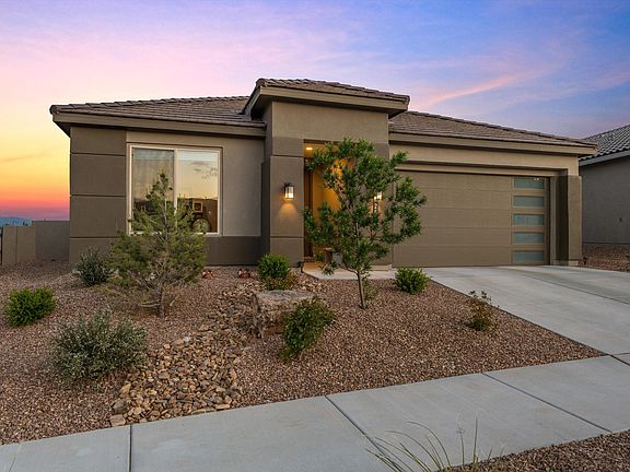 Take this wonderful opportunity to own this remarkable 1 year old smart home in Mariposa, surrounded by miles of hiking and mountain biking trails. The location offers breathtaking views of the Sandia mountains, ample amounts of upgrades, an oversized 3 car garage for extra space, and a spacious gourmet kitchen with granite counter tops and stainless steel appliances. With card access to endless activities and gatherings at the pool, gym and community center! This home truly provides a vibrant and engaging lifestyle. The combination of stunning natural surroundings and community amenities- makes it an ideal choice for those seeking an active and fulfilling life in a picturesque setting.