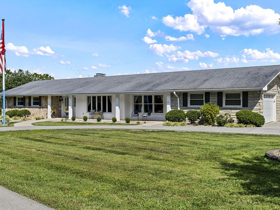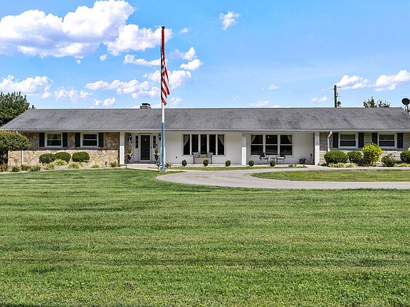 Embrace Bluegrass living with this beautiful fieldstone ranch on 10+ acres in the heart of horse country. Just minutes from interstate access, yet surrounded by rolling hills and scenic views, this mini farm offers a larger barn with 6 stalls, including water and electric connection, 90 foot roof hangover on the barn, 5 paddocks, each with their own gate and water ran along each paddock. The home has been thoughtfully updated, featuring an oversized covered back porch—perfect for family gatherings or relaxing dinners—accessible through large sliding glass doors from the spacious family room. The main level boasts a large primary suite with a luxurious bath, while the walk-out basement adds a second family room, bedroom, and bath. Additional highlights include a new 2-car basement garage, a 2016 kitchen update with granite counters and double oven, updated windows, lighting, and flooring. Newly surfaced driveway. See attached documents for additional home upgrades. Move-in ready and ready to enjoy—schedule your private tour today!