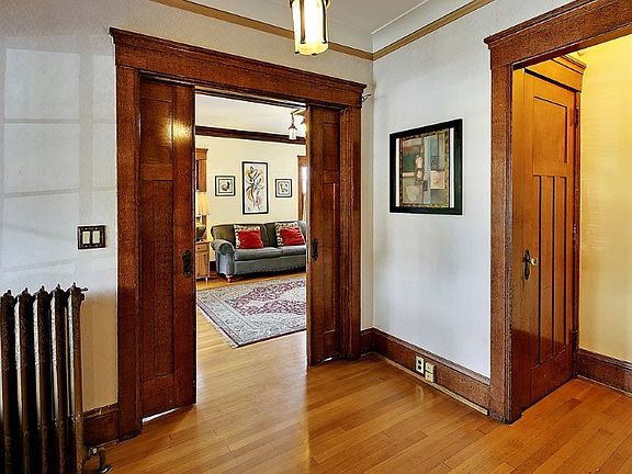 Timeless Craftsman w/gracious floorplan & gorgeous period details. Formal entry. Living rm w/stained glass windows & fireplace w/built-ins. Adjacent den/office. Updated kitch w/ss appl, farmhouse sink, prep area/wetbar w/wine fridge. Formal dining rm w/box beams. 3 generous BRs up, including a master w/Cascade & territorial views +2 bedrms w/sleeping porch/playrm between. 4-piece full bath w/soaking tub. Clean bsmt w/tons of possibilities. In the heart of walkable Wallingford. Truly a rare find!