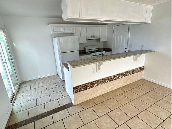 Lovely backyard spaceGenerous granite counter spaceBreakfast barBeautiful white cabinetryBright kitchen