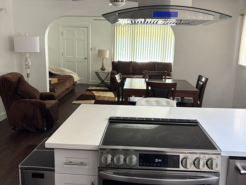 Furnished property set up for short term stays, but flexible for longer. Newly renovated kitchen and bathroom areas equipped with stainless steel stacked washer/dryer, stove, refrigerator. Located on a beautiful wide sunny street with ample parking. Fast WIFI available. 3 SMART TVs in bedrooms and living room area equipped with ROKU. Nice quiet neighbors. We share one wall as I live next door.