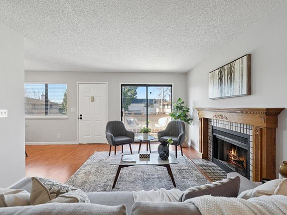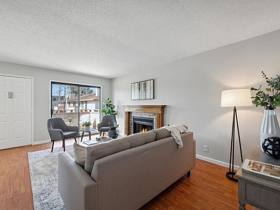 This cozy yet spacious 1-bedroom, 1-bathroom home has 608 square feet of living space. The interior features an in-unit laundry, a walk-in closet, and a bright and sunny front patio, perfect for enjoying your morning coffee or unwinding after a long day. The well-appointed kitchen includes modern appliances, making meal preparation a breeze. You'll appreciate the warmth of the fireplace during chilly evenings, and the convenience of having a private outdoor space for relaxation. Residents of Villa De Oro enjoy access to a communal pool and rec room, perfect for staying active and enjoying the California sunshine. Conveniently located near the community pool, this home offers easy access to the San Mateo Bridge, Highways 92 and 880, Chabot College, restaurants, and shopping, making it an ideal location for commuters and those seeking a vibrant lifestyle in the Bay Area. In addition to the assigned carport parking spot with storage, this well-maintained development boasts low HOA fees, further enhancing the appeal of this inviting residence. Don't miss the opportunity to make this delightful condo your own and experience the best of Hayward living. Schedule a viewing today and come see all that this charming home has to offer. Parking space is #58 below unit.