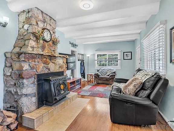 Charming Stone Cottage style Home in the Heart of Historic Descanso! Welcome to your own slice of peaceful country living! Tucked away in the serene mountain town of Descanso, this cozy 2-bedroom, 2-bath stone-faced cottage sits proudly on a beautifully maintained ¼-acre lot. Whether you're looking for a weekend escape or a full-time residence, this inviting retreat offers the perfect blend of rustic charm and modern comfort. Step inside to find warm, solid wood beam ceilings and a stunning stone fireplace with a wood-burning stove — the heart of the home and a perfect place to gather on cool mountain evenings. The thoughtfully updated kitchen features a built-in oven, cooktop, and dishwasher, while the upgraded bathrooms add a touch of convenience to the home’s timeless appeal. Enjoy the fresh mountain air year-round on the spacious covered porch surrounded by low-maintenance landscaping, brickwork, turf, and even a whimsical tree swing. The fully fenced yard offers plenty of space for RVs, trailers, and toys, with multiple storage sheds for all your gear. Recent upgrades include newer windows, roof, and siding — enhancing energy efficiency without sacrificing the home’s natural charm. With nearby access to hiking and horse trails and just minutes from the beloved Descanso Junction with its award-winning food and live music, you’ll experience the best of both tranquility and community. Come experience the quiet magic of country life — this charming cottage is ready to welcome you home.null