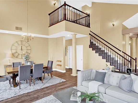 WELCOME HOME TO THIS BEAUTIFUL large 5 bedroom, 3 bathroom home located in the heart of Murrieta. Walking in you'll find a freshly painted grand formal living space with vaulted ceilings that give a luxury look and feel. This home features a downstairs bedroom with a walk-in closet and direct bathroom access. Beautiful luxury vinyl plank covers the downstairs floors and upstairs you'll find travertine tile and carpet. The kitchen includes freshly painted cabinets with gorgeous granite counters, a double oven, and a large walk-in pantry. Enjoy not 1, but 2 fireplaces, one in each living space. Moving upstairs you'll find the 4 other bedrooms. The large master bedroom features an oversized walk-in closet, beautifully upgraded glass sinks, and long bathroom counters. Be sure to check out the hidden loft in one of the bedrooms! The secret ladder is hidden behind the bedroom door and creates a fun play space or can hold 2 twin mattresses. This area is complete with its own lighting. 2 new HVAC systems were installed in July 2021. Murrieta home sits in the perfect location with easy freeway access for commuters, close to shopping, restaurants and business needs as well as the award-winning schools. This is a very well-cared-for and updated home in a great Murrieta neighborhood. No HOA and LOW TAXES.
