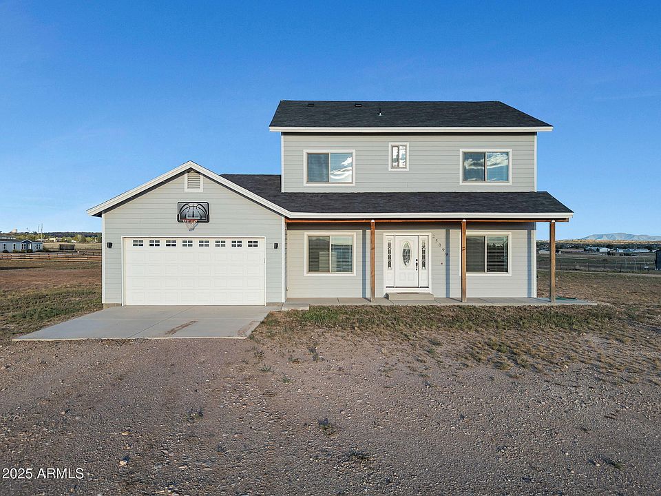 Beautiful custom 4 bedroom, 3 bath home on 2 1/2 acres in country setting, yet so close to city amenities. This lovely home hoffers an Owners Suite, plus 3 additional bedrooms AND an office/den. The open kitchen has a large island, granite counter tops, custom cabinetry, sizable pantry and stainless appliances. The dining room has access to the back deck, perfect for BBQing. Distant mountain views from every window. Downstairs you will find the kitchen, dining room, laundry, living room, half bath and office/den (which could easily convert to a main level bedroom). Upstairs you will find the owners suite, 3 additional bedrooms and a full guest bath. Home also features private well, wholehouse water filtration, zoned climate contraol & tankless water heater. Space to add barns and workshop