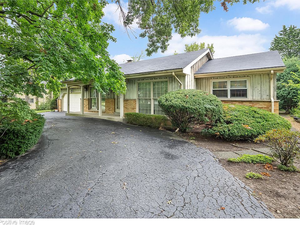 Walker School Ranch Home with charming circular drive on low traveled street, steps to town, train and area schools and 1/2 a block over to "STEEVES PARK" swings, slides, soccer fields and open grass for play! Ready for your renovations or or build options! House is very liveable with 4 beds/2 baths even offering a primary suite on its own wing of the home. Fabulous "L" shaped kitchen with eat in dining table space. Living room, family room with fireplace and slider to rear patio #1, beds 2, 3 and 4 on wing one sharing a full hall bath/tub shower scenario and primary is down its own hall space with just shower offering (no tub). Full basement with crawl access; partially finished, cedar closet, office nook, work bench and laundry room area. Some newer mechanicals, dishwasher AS-IS conveyance, home is AS-IS conveyance. Yours to redesign or renovate or completely REIMAGINE, REBUILD & REDO. Note there are Two Parcel IDS. 100 x 107 NEW SURVEY ATTACHED.