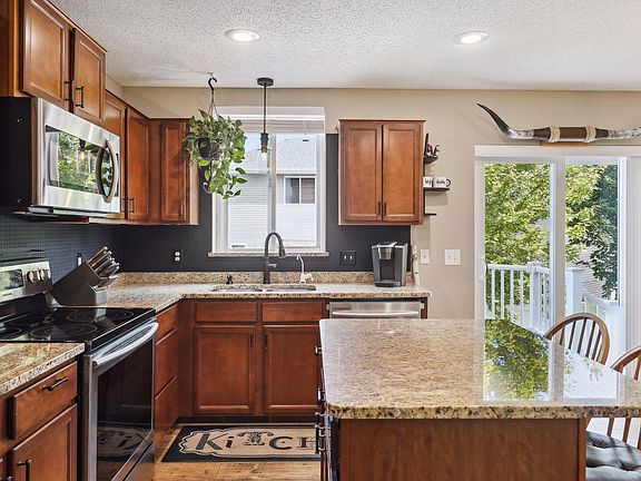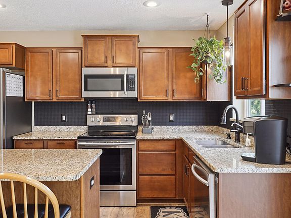 Simply the best home & value in the Shakopee market! Gorgeous 2009 built two story w/ 4 bedrooms & laundry on the upper level. 4 bathrooms throughout the home. Amazing finished 3 stall dream garage w/ epoxy flooring. Garage ceiling rack & cabinets for additional storage are included. Potential for a 5th bedroom in the lower level. Absolutely pristine & meticulously maintained. New Mohawk waterproof laminate flooring throughout the main level. The kitchen features granite countertops, stainless steel appliances, tile backsplash, center island, breakfast bar, recessed lighting & staggered cabinets. Maintenance free deck w/ aluminum railing & stairs to the backyard. The flat backyard includes mature trees, sprinkler system & is fully fenced w/ a 6 ft tall maintenance free privacy fence. Lower level is set up for entertaining w/ hook ups for a projection TV & surround sound. New tankless water heater. Easy access to highways, schools, parks, trails & shopping. Great Shakopee location!