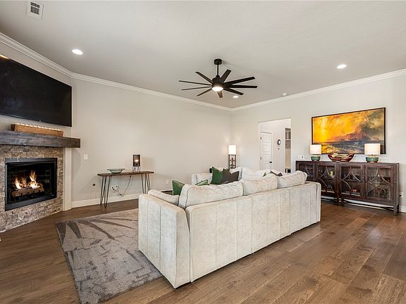 This Gorgeous brick home features 4 bedrooms and 2.5 baths with a split floor plan allowing for privacy and open-concept living with a practical and spacious layout. Enjoy the spacious Kitchen with custom cabinets, granite countertops, gas cooktop and convection oven. The dining room features large windows, bringing in plenty of natural light and giving that spacious feeling. The beautiful wood floors brings a warm and comfortable feeling to this home. Stay cozy in the winter by the fireplace in the living room and entertain your guests in the spring and fall by the Fireplace under the covered patio.