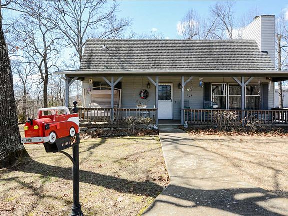 2 ACRES IN BRANSON, WORKSHOP & RV GARAGE!! PRETTY COUNTRY HOME WITH LOTS OF ROOM & could be zoned for commercial use including nightly rental cabins!. Park-like shady lot about a mile from Hwy 76, or half that from Fall Creek Road. Beautiful front porch overlooks the circular Drive & mature trees beyond. The comfortable Living Room boasts pretty upholstered cornices over the large windows, & a big stone sided gas fireplace. Downstairs is a finished family room & two huge unfinished spaces that include the Washer/Dryer & an extra freezer. Lots of storage, Ceiling fans in all living areas. Pole Barn outside measures 40x30 with two 12 ft doors, Used as a workshop & an RV Barn. So close to everything Branson, this place is special. Come and see if this is your dream!