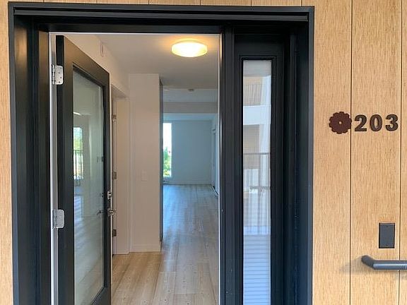 A unique urban living experience at District Flats in Southlands of Boundary Bay. Secured underground parking supplies with electric charging stations. Balconies with natural gas BBQ. Shared garden courtyard with children's play area, lounge space and outdoor dining area which includes stone harvest table, basalt counter for meal prep and catenary lighting. Electric baseboard heating and natural cross-ventilation cooling. Natural light and fresh air flow through oversized and operable low-e windows. This suite is wheelchair accessible. White roller shades.
