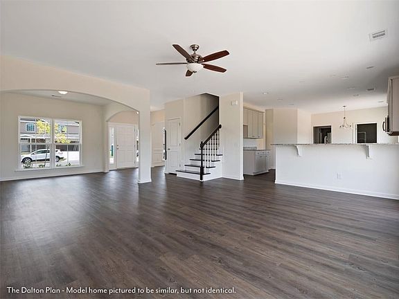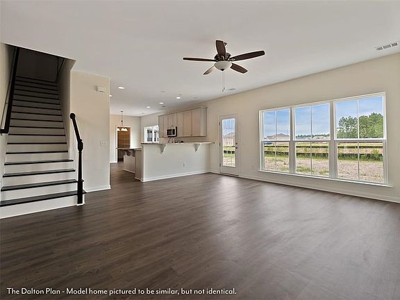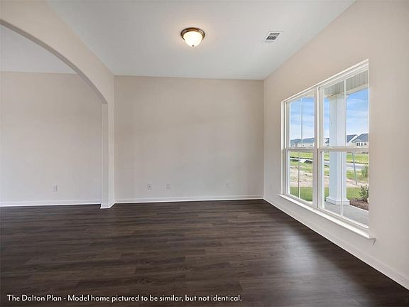 The Dalton plan by Smith Family Homes (042CV) is in Covington Pointe with an estimated completion of January 2023. It has 2,583 sqft with 4 bedrooms and 2.5 baths. It has laminate flooring in the common areas, tiled flooring in the laundry and baths, and carpet in the bedrooms. The kitchen has granite countertops and stainless-steel appliances (dishwasher, microwave, and oven.) The exterior is low maintenance vinyl siding. It includes a covered porch and 3 zones of irrigation as well. Model home images shown, to be similar but not identical. Exterior photo is a current image of the home being built.