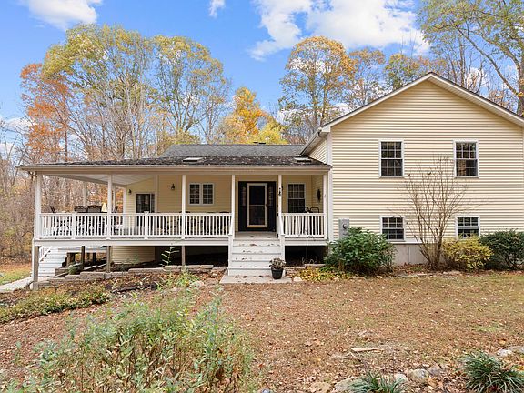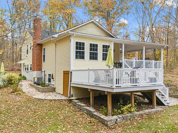 This exceptional home sits on a rear lot with almost 7 acres of beautifully landscaped property with abundant privacy! The seller has just installed a brand new heating system, new central air, and a new water filtration system!! You enter the home from an amazing wrap around porch with a second tier used for outdoor dining. The main floor offers beautiful hardwood floors, a large gorgeous kitchen with custom cabinets, stainless steel appliances and a peninsula for casual dining. A corner was created for a small office space, and the living room has a stunning stone fireplace and custom made mantel. The living room steps into a fabulous dining room full of windows and a sliding glass door to the porch. This room was always a favorite because of all the natural sunlight and views of the property. The second level offers 3 good size bedrooms with ample closet space and hardwood floors. The remodeled primary bathroom has a walk in corner shower, all new plumbing fixtures, a vanity with a granite countertop, all new bathroom accessories and a large second closet with plenty of storage for additional items or clothing. The main full bathroom has a jacuzzi tub, large vanity, and the tub is centered between two custom linen closets. Down on the ground level is a family room with a half bath/laundry room and access to a stamped concrete patio and the door to a large two car garage. There is also plenty of storage in the unfinished basement that is accessed from inside the garage. There is an easement from the road to access two properties which were built at the same time. The two owners have always shared any plowing costs and have never had any problems as both properties have plenty of private off road parking.