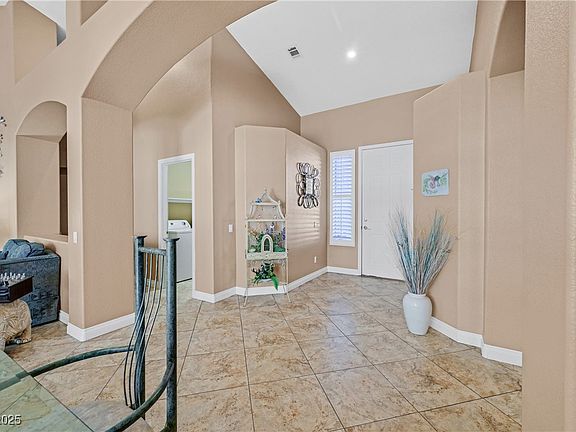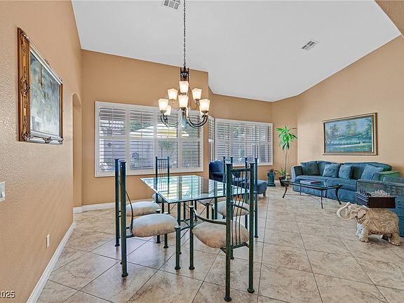 Prime Green Valley Ranch Location! Highly sought-after single-story home featuring 4 bedrooms, 3-car garage, and 2,418 sq. ft. of open living space. Situated on an oversized 9,583 sq. ft. lot with beautiful landscaping and great curb appeal. Interior highlights include vaulted ceilings, plantation shutters, and a spacious living/dining room combo. Tile Floors . The open floorplan is perfect for entertaining, with seamless indoor-outdoor flow to the covered patio. Lovingly maintained by the longtime owner. Excellent value in one of Henderson’s most desirable neighborhoods! Located within a top-rated school district and close to walking paths, parks, The District, Whole Foods, Lee’s Family Forum, North Italia, and more!