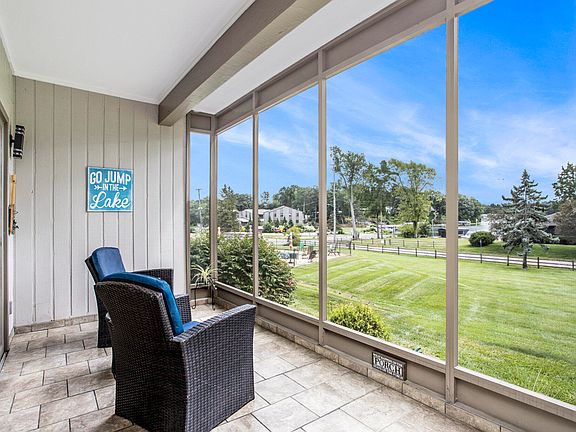 SELLER MOTIVATED Executive Lake Condo. Updated Ground Floor Corner Unit with 2 Car Garage, 3 Bedrooms, 2 Bathrooms. Amazing Tiled Entry Porch & Screened Back Porch overlooking Pool and Shared Lake / Dock Access. Dock space can be leased - current wait list. Corner Unit means extra privacy AND easy access to (2) parking spaces in addition to private garage & upper level guest parking. Updates everywhere - from large eat in kitchen w tiled backsplash & flex space with oversized windows, to updated bathrooms with elegant fixtures. Main floor IN UNIT laundry. Well Managed Home Owners Association - 500/ month dues covers all exterior maintenance, lawn care, snow removal, trash, water, sewer. New roof this year. This HOA allows 'existing' pets at move in (see rules). Don't forget the pool lakeside & the shared frontage on Battle Creek's favorite all sport Goguac Lake. It's definitely a lifestyle move - maybe a sunset cruise or beverage?