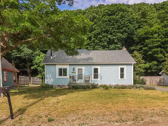This cozy three-bedroom, one-bath home sits on a quiet tree-lined street in Elberta's quaint waterfront village. Enjoy the convenience of natural gas, high-speed cable internet and municipal water and sewer. Main floor living at its best with all rooms on the main floor except for the third bedroom. The oversized 24x34 detached garage with two other storage areas will store all your up-north toys. Located a block from Betsie Bay and down the street from Lake Michigan beaches, this charming home is within walking distance of parks, playgrounds, restaurants and the Betsie Valley Trail. Across the bay is Frankfort, home to an eclectic mix of shops, restaurants, and much more! This is your place to enjoy all that Northern Michigan has to offer. View this property's website with a virtual tour at https://tours.bluelavamedia.com/s/idx/182554.