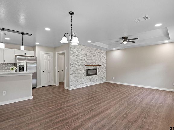 Electric fireplaceGood size backyardGalley style kitchenExterior storage roomInterior laundry room
